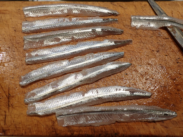 三枚下ろしにして塩を振り5分くらで酢洗いします。