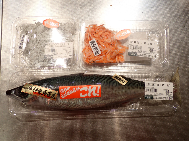 古いホテルなので良質な源泉を持っていて伊東随一の湯量があります。 伊東海岸通りにある開福丸のランチ定食です。 本日は定評のアジ刺し身とキスフライでした。 開福丸の厚みのあるアジフライ定食です。 尾は付いていますが骨は取ってあります。 山常鮮魚で伊東港朝獲れのアジとイカの刺し身を仕入れてから フードストアAOKIで沼津港直送朝獲れの生シラスを買いました。 温泉に入ってからこれらのつまみで昼から部屋で一杯やります。 翌日の朝にAOKIで釜揚げシラス、桜えび、朝獲れサバを買って 帰り道では農家が直接売っている無農薬蜜柑や柚子を買いました。 家に帰ってから〆鯖やポン酢を作るのも伊東にくる楽しみです。 |