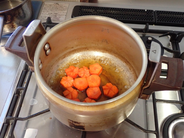 お節料理には本来は色の濃い京人参をつかうものでしょうが、最近は