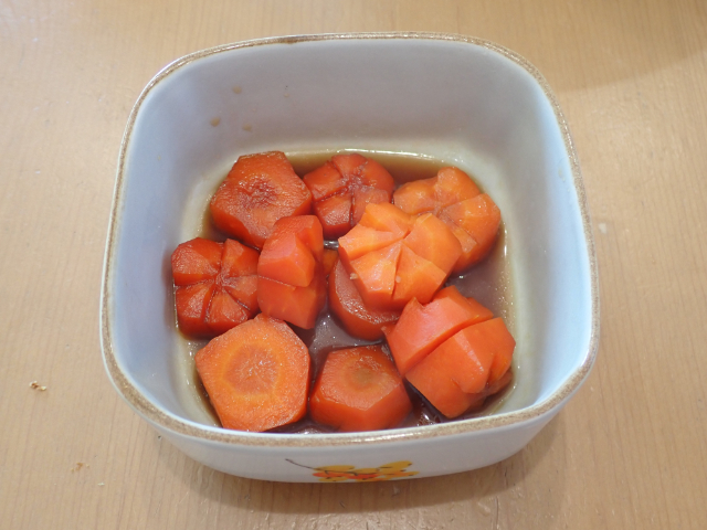 入手できないので普通の人参を使いました。市販品は花の型で抜いて