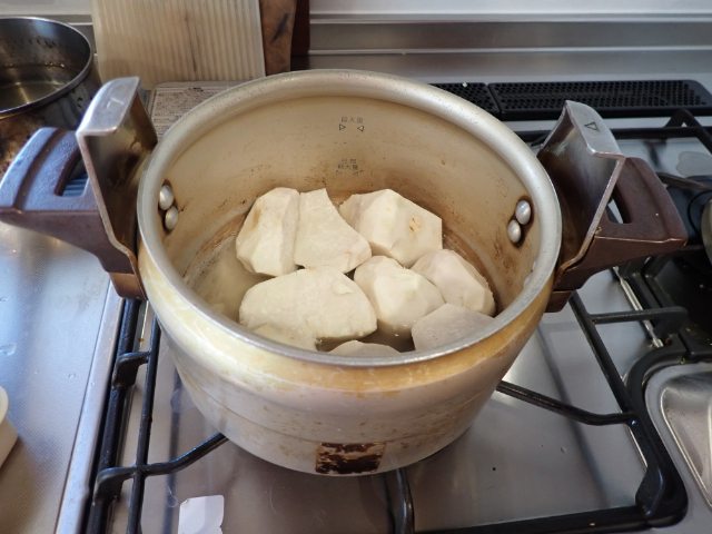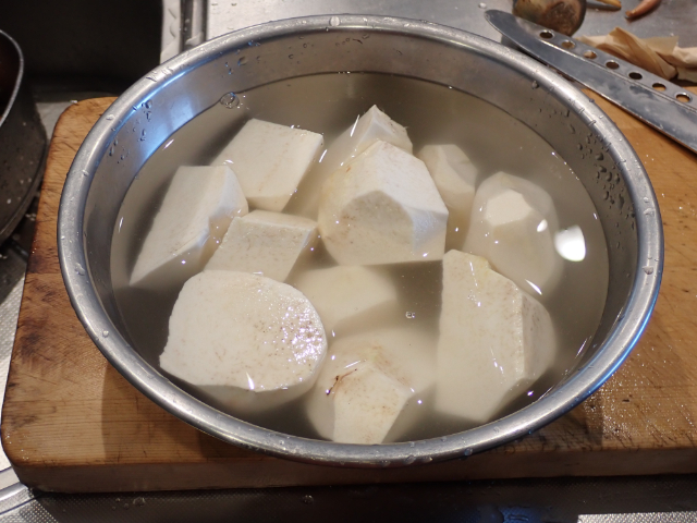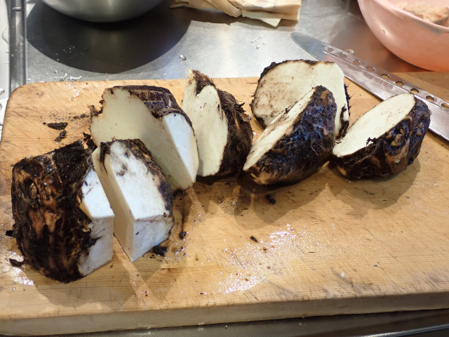 煮立てのまだ温かい八頭は「そばがき」に似た味で良い酒肴です。