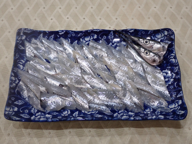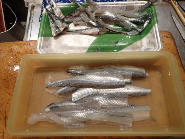 三枚下ろしにして塩を振り5分くらで酢洗いします。
