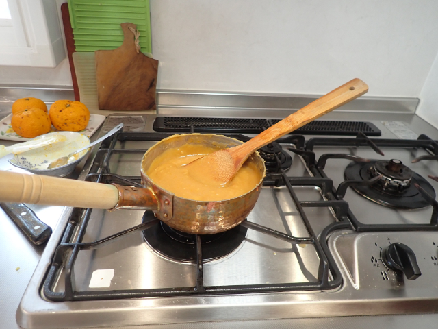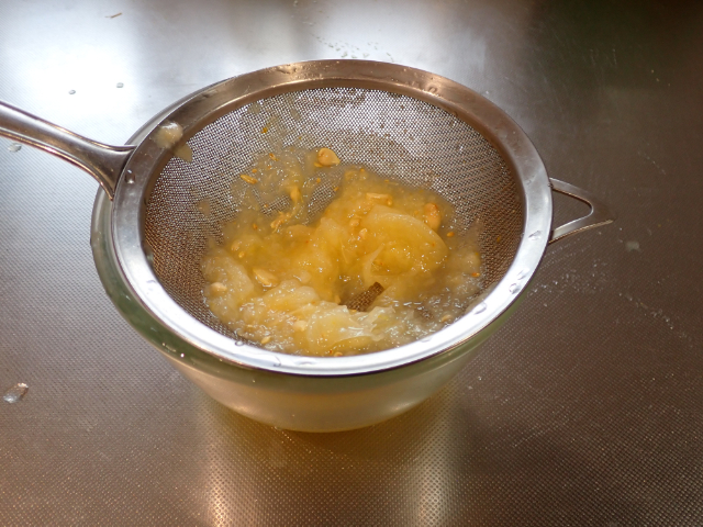 無農薬なので見た目は少し悪いですが 皮も安心して食べることができます。 皮をおろし金ですりおろします。 果汁を絞ります。 白味噌を使います。 果汁に砂糖を溶かし白味噌を入れてゆっくり 照りが出るまで加熱すると柚子味噌の完成です。 柚子蜜の果汁は濾して使います。 蜂蜜と白砂糖を使います。 果汁に白砂糖を溶かしてから 蜂蜜をいれて加熱します。 柚子味噌と柚子蜜を作った後に果肉で柚子ジャムを作り、 種子はホワイトリカーに漬け込むと柚子化粧水になります。 皮は砂糖で発酵させてビールにすると捨てるものはありません。 柚子味噌は香りが良くふろふき大根や味噌田楽に使います。 ゆず蜜はスピリッツに入れたり、チューハイを作ったりします。 |