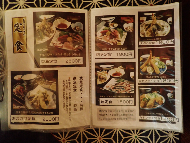メニューです。小田原のアジフライ定食と比べたくなりますが、